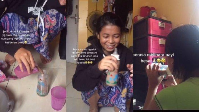 Dalam video itu, Cantika bercerita sang sahabat kerap ke indekosnya untuk minum susu pakai dot.