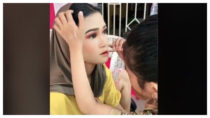Dalam rekaman video yang diunggah oleh akun TikTok @antymakeup1, tampak bocah SD itu hati-hati merias seorang wanita.
