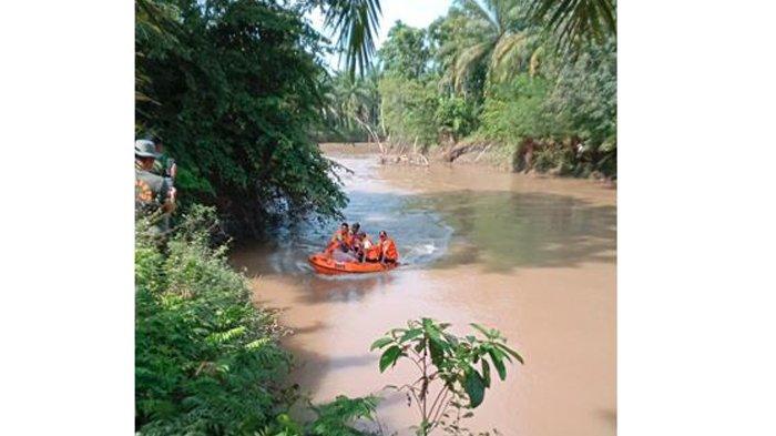 Proses pencarian bocah 9 tahun yang diterkam buaya di Jorong Padang Mardani, Nagari Manggopoh, Kecamatan Lubuk Basung, Kabupaten Agam Sumbar, Senin (17/1/2022).