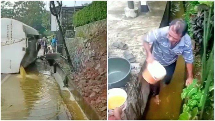 Lihat Truk Tangki Bawa 14 Ribu Liter Minyak Goreng Kecelakaan, Warga Malah Rebutan, Videonya Viral