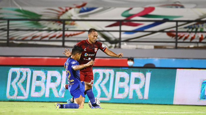 Wawan Febriyanto saat berduel dengan pemain PSIS Semarang. Kans PSIS Semarang gaet Wawan Febriyanto diprediksi tak akan berjalan mulus.