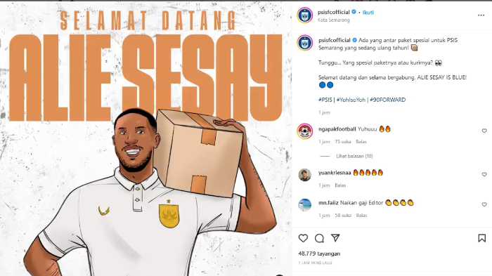 Dilansir dari akun resmi tim @psisofficial pada Rabu (18/05/2022), Alie Sesay mulai diperkenalkan ke khalayak.