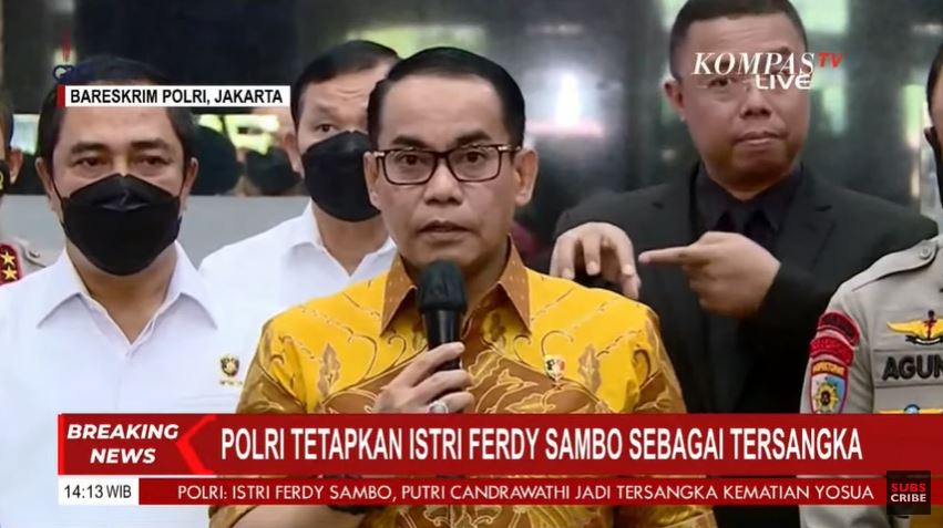Pihak kepolisian tetapkan Putri Candrawathi sebagai tersangka pembunuhan Brigadir J dengan dua alat bukti.
