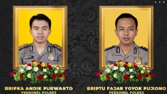 Kedua polisi yang meninggal dalam tragedi Stadion Kanjuruhan tersebut masing-masing bernama Bripka Andik Purwanto dan Briptu Fajar Yoyok Pujiono.