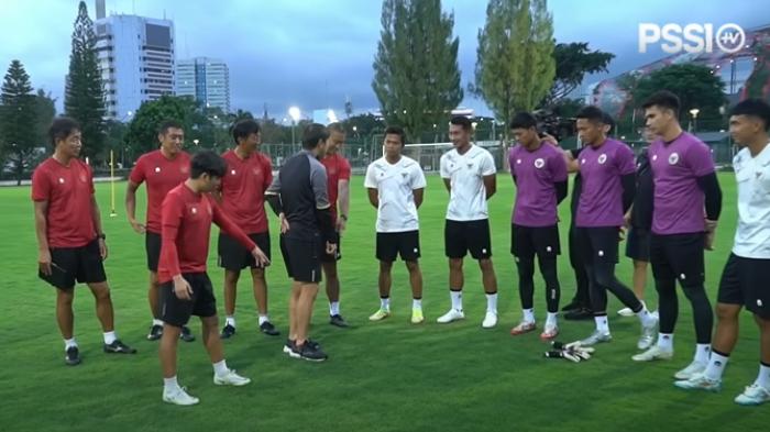 Tidak ketinggalan, Shin Tae-yong juga ikut membahas aksi konyol dari anak asuhnya saat menggelar latihan jelang lawan Thailand di Lapangan A, Senayan, Selasa (27/12/2022).