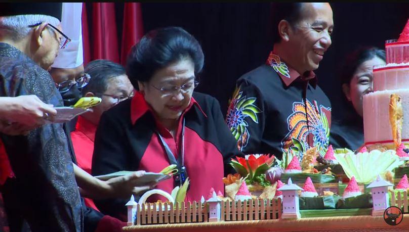 Jokowi memberikan pujiannya kepada Ketua Umum PDI Perjuangan (PDIP), Megawati Soekarnoputri dalam perayaan HUT ke-50 PDIP
