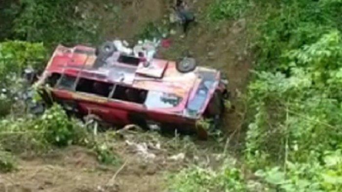 Bus masuk jurang sedalam 20 meter yang berada area kebun kopi.
