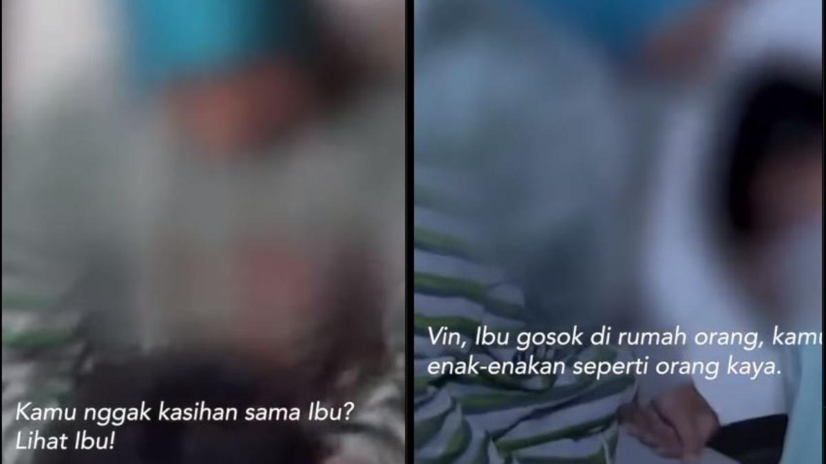 Dalam video tersebut, sang ibu yang disinyalir adalah seorang asisten rumah tangga tersebut tak senang dengan keputusan anaknya yang tidak membantu meringankan bebannya.