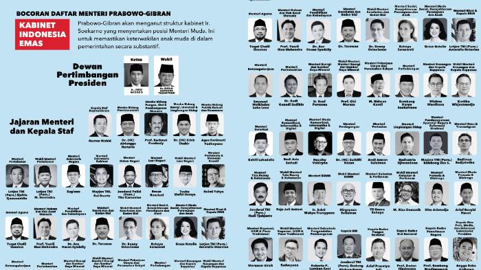 TRIBUNWOW.COM - Viral beredar kabar nama-nama yang masuk dalam jajaran menteri dan kepala staf era Prabowo Subianto - Gibran Rakabuming Raka.