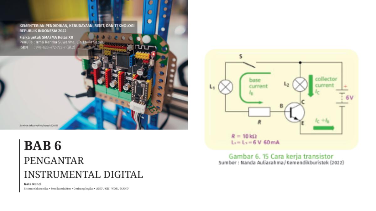 Bab 6 dengan judul Pengantar Instrumen Digital mengulas tentang sistem elektornika, semikonduktor hingga prinsip gerbang logika.