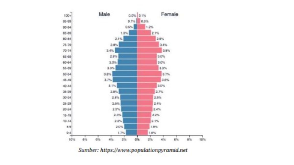 5. Masalah utama dari negara dengan bentuk piramida penduduk seperti pada gambar berikut adalah ….