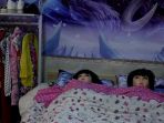 Seorang balita alami nasib naas karena tidur dengan tumpukan bantal dan boneka besar yang mengahalanginya agar tak terjatuh dari ranjang.