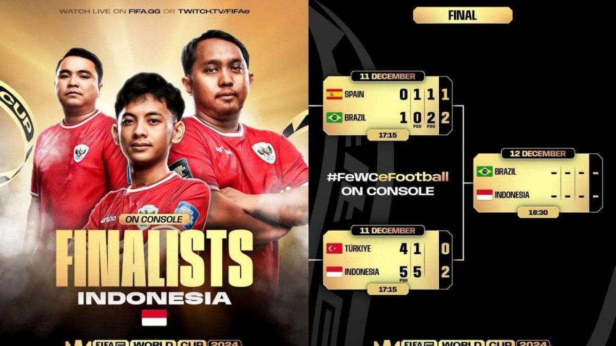 Simak jadwak laga final Timnas eFootball Indonesia vs Brasil dalam FIFAe World Cup 2024 kategori console. bisa dilihat melalui link live streaming.