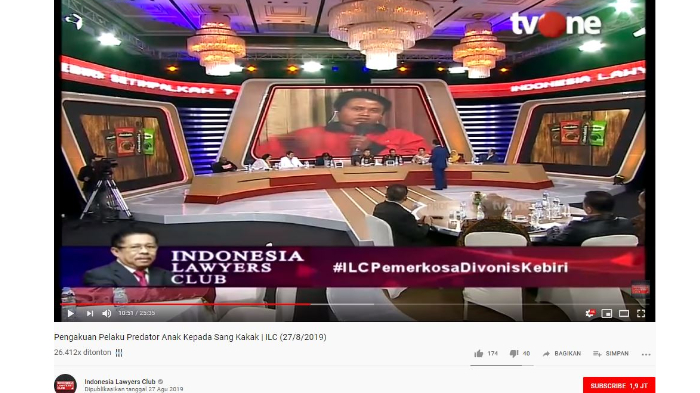 Kakak pemerkosa 9 anak yang terancam kebiri kimia bantah adiknya perkosa anak di masjid meski terekam CCTV, Karni Ilyas dan hadirin ILC tertawa.