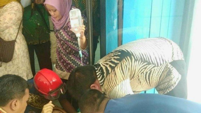 Seorang wanita melahirkan bayi perempuan di depan kantor Planetarium, Taman Ismail Marzuki, Jakarta Pusat, Kamis siang (27/2/2020).