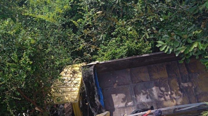 Sebuah truk yang mengangkut aspal masuk ke jurang sedalam 20 meter di Jalan Raya Nasional III Sukabumi Palabuhanratu, Jawa Barat, Jumat (5/5/2023).