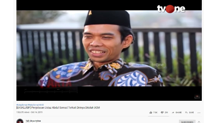 Penceramah Ustaz Abdul Somad (UAS) memberikan tanggapannya terkait pembatalan kuliah umum yang mulanya direncanakan di Universitas Gadjah Mada (UGM).