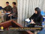Baru dibuka Senin lalu, perempuan dan laki-laki yang belajar di universitas Afghanistan dipisahkan dengan tirai.
